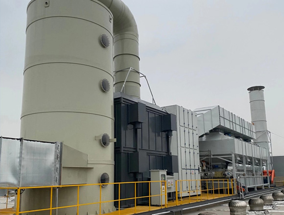 高壓靜電裝置-干式過濾-吸脫附系統(tǒng)-催化燃燒-升溫節(jié)能系統(tǒng)-風(fēng)機(jī)-控制系統(tǒng)